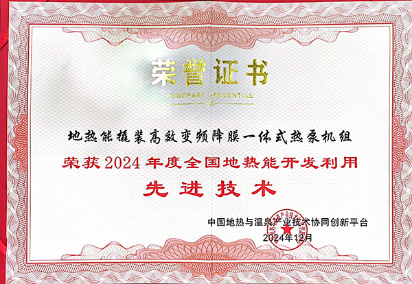开幕式结束后,大会举行颁奖典礼,集团中共临邑县委党校地源热泵项目获得“2024年度全国地热与温泉行业优秀工程项目”,集团地热能撬装高效变频降膜一体式热泵机组获得“2024年度全国地热能开发利用先进技术”,集团获评“2024年度全国地热与温泉行业突出贡献单位”,再次彰显集团在地热领域的突出成绩。