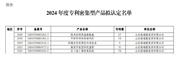近日,国家专利密集型产品备案认定试点平台公布了2024年度专利密集型产品拟认定名单,格瑞德集团水(地)源热泵机组、高效节能型风机盘管、节能型消防排烟风机、环境友好型蒸发冷却装备、隐身抗毁保温舱舱盖5个产品入选国家专利密集型产品。产品的成功认定不仅激发了集团新动力,增添了新动能,也体现了集团专利工作的显著成果